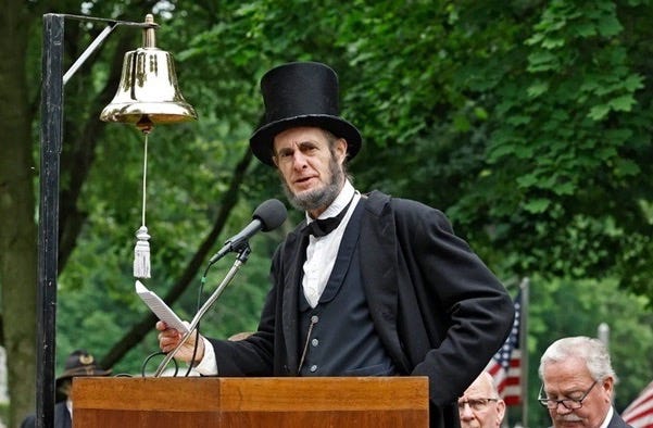 But Boggs worries those group photos aren’t going to be happening in a few years. Most Lincolns are old because, well, Lincoln was old, aged and weathered by his time in the White House. Boggs said the Lincolns in the association are passing away and new Abes aren’t stepping up because it’s a challenge to start as a historical reenactor in 2025: getting into schools has become harder with added concerns about violence and lingering isolation from the COVID-19 pandemic.