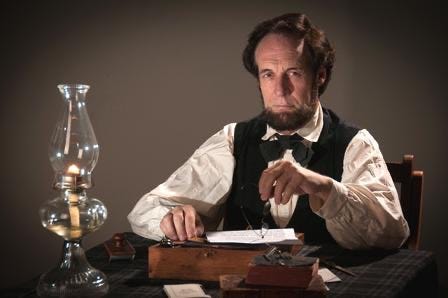 “I understand that our great nation, the United States of America, continues to this day? That’s wonderful, because back in my day we were having a little difficulty on that very subject of being united,” Wood’s Lincoln says in an online video preview to his presentation, clasping his hands together on the word “united.”