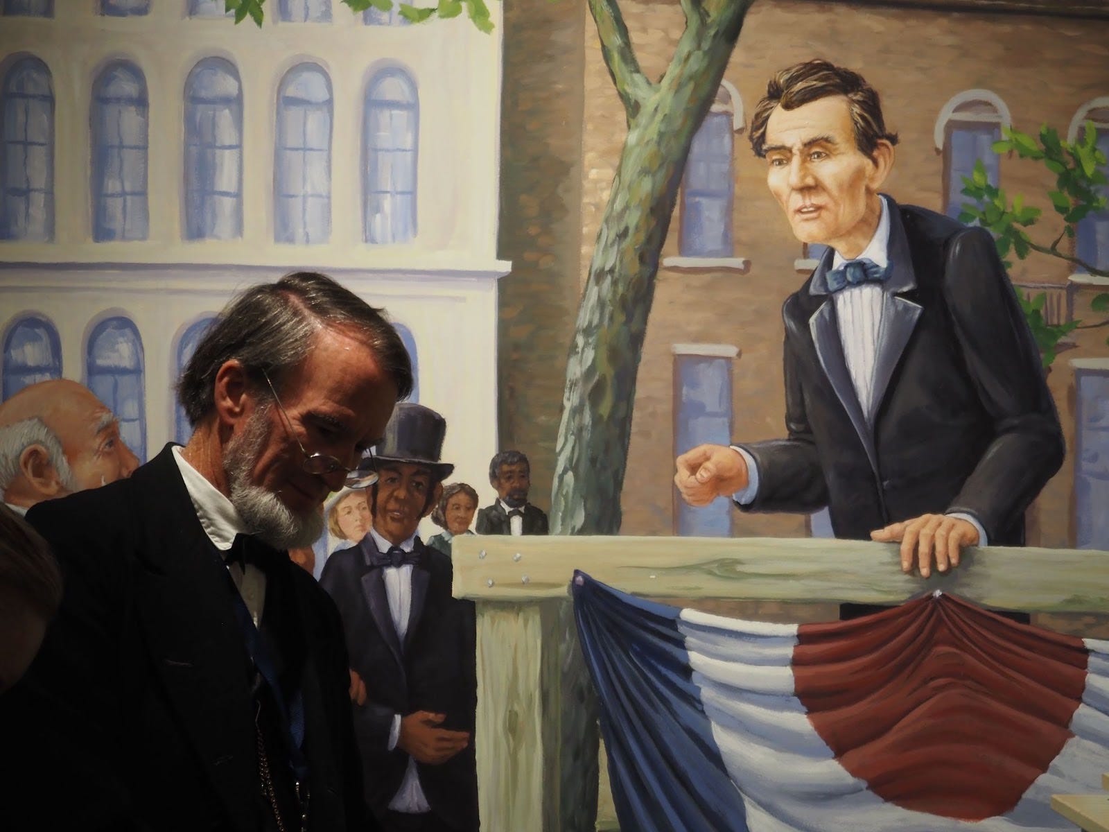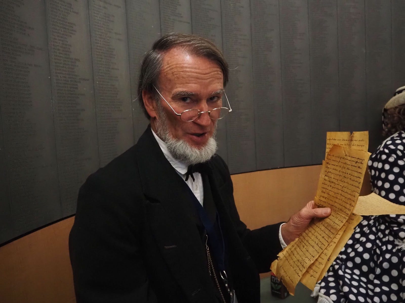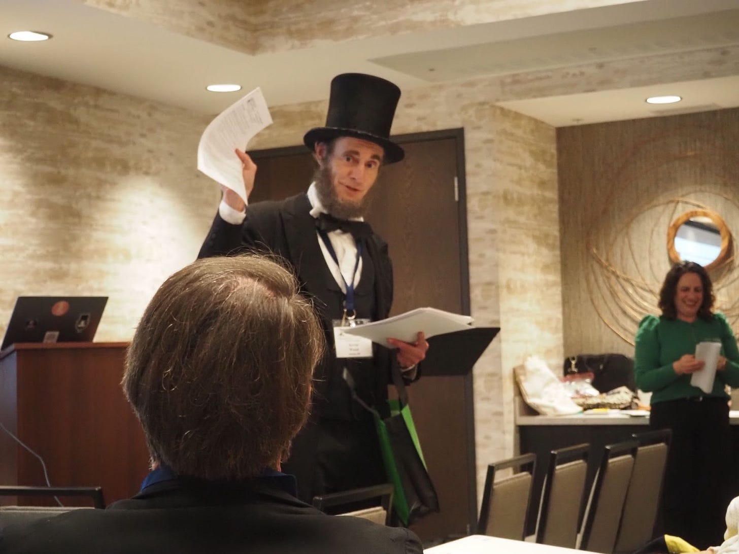 The gaggle of Abes then descended the elevator and made their way into the museum’s theater to hear a talk from Tom George, a local Lincoln expert.