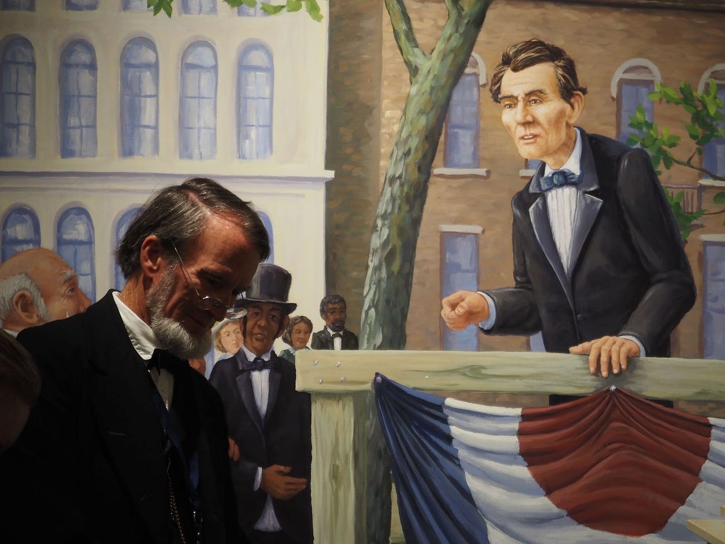 Wood, who was so fond of Lincoln’s religious and moral values, wanted to keep “bringing history alive” in a way “students will never forget” — so he decided to become a part-time Lincoln. While researching for the role and reading some of the “18,000 books about Abraham Lincoln,” Wood found another reason to like Honest Abe: Lincoln was worried he’d never do anything useful. In the mid-19th century, growing up on the frontier, Lincoln thought all the world’s “great work had been done.” Americans had made it out to the West. American titans like George Washington, Thomas Jefferson and James Madison had invented democratic governance. There didn’t seem to be any great role for an uneducated gangly guy from Illinois. But, of course, Lincoln managed to find some things to do.